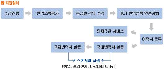ÁÖ)¿¡µàÀªÀº ½ºÆù¼½± Áö¿øÀ» ÅëÇØ ÇÕ°ÝÇϽŠȸ¿ø´ÔµéÀÇ °¢Á¾ ¹ø¿ªÈ°µ¿À» Áö¿øÇϰí ÀÖ½À´Ï´Ù. ±³À°À» À̼öÇϽŠÈÄ TCT½ÃÇè¿¡ ÇÕ°ÝÇÏ½Ã¸é µî±Þº°, ºÐ¾ßº°, Çüź° µî ȸ¿ø °³°³ÀÎÀÇ È°µ¿ Èñ¸Á ¿äû »çÇ×À» ¼ö·ÅÇÏ¿© ¸ÂÃãÃßõ ¼ºñ½º¸¦ Á¦°øÇÕ´Ï´Ù. ÇÕ°Ý ÈÄ À̷¼ µî·Ï ÀýÂ÷´Â °øÁö¸¦ ÅëÇØ Å뺸 µå¸®¸ç µî·ÏÇϽŠÇÁ·ÎÇÊÀº º» ÇØ´ç »ç¾÷ºÎ ÀÎÀç DB¿¡ µî·Ï µË´Ï´Ù.